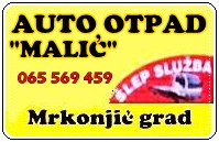 Polovni autodijelovi,auto gume,sklopovi,motori,dijelovi šasije,od sada možete naći i na auto otpadu Malić,pokraj magistralnog puta Mrkonjić grad-Jezero-Šipovo.Najpovoljnije cijene,širok izbor svih vrsta vozila,i ljubazno osoblje.